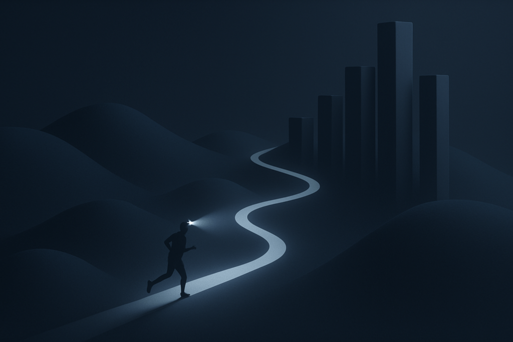 Après une descente fluide, un virage à gauche, et soudain, en haut d’une pente vertigineuse, j’aperçois les frontales des coureurs déjà au sommet. L’image est aussi impressionnante que décourageante.